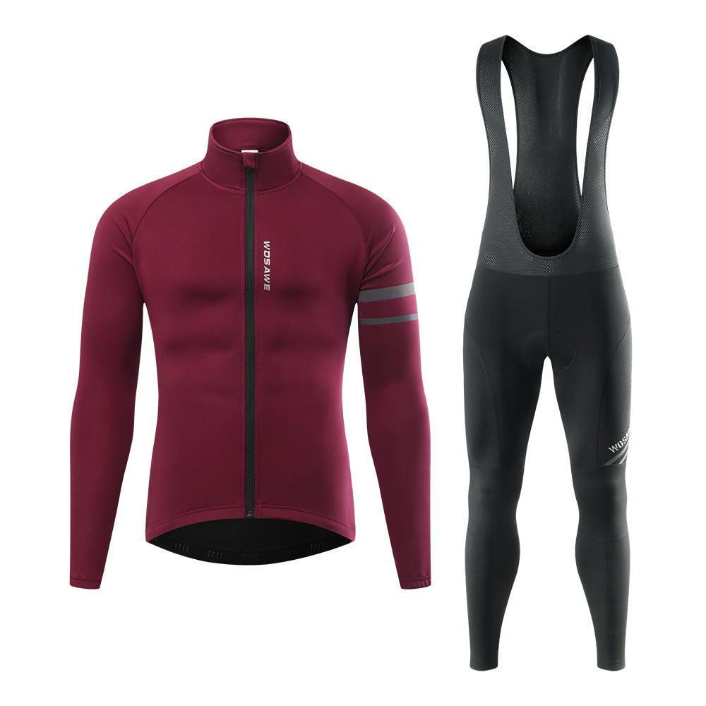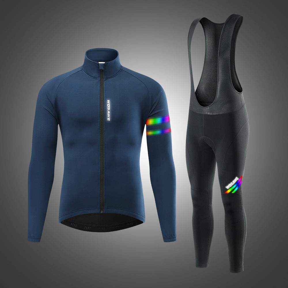 Winter Outdoors Cycling Wind-proof And Cold Protection Slim Fit Warm Fleece-lined Reflective Top Suspender Pants Suit